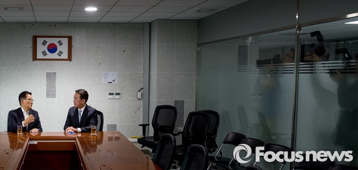 | △ 의견 조율하는 박지원 원내대표-현기환 정무수석 |