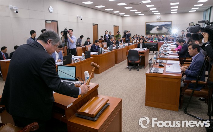 (서울=포커스뉴스) 12일 오후 서울 여의도 국회에서 열린 농림축산식품해양수산위원회 전체회의에 참석한 김우남 위원장이 개의 선언을 하고 있다.