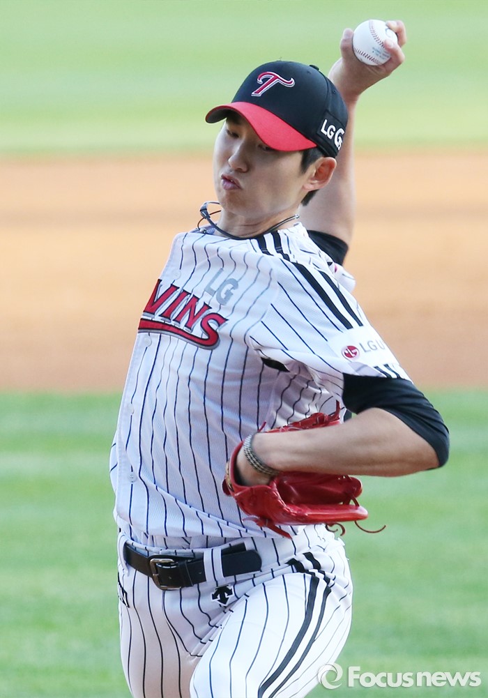 (서울=포커스뉴스) 12일 서울 잠실구장에서 열린 2016 프로야구 삼성-LG 경기에서 1회초 LG 선발투수 이준형이 투구하고 있다.
