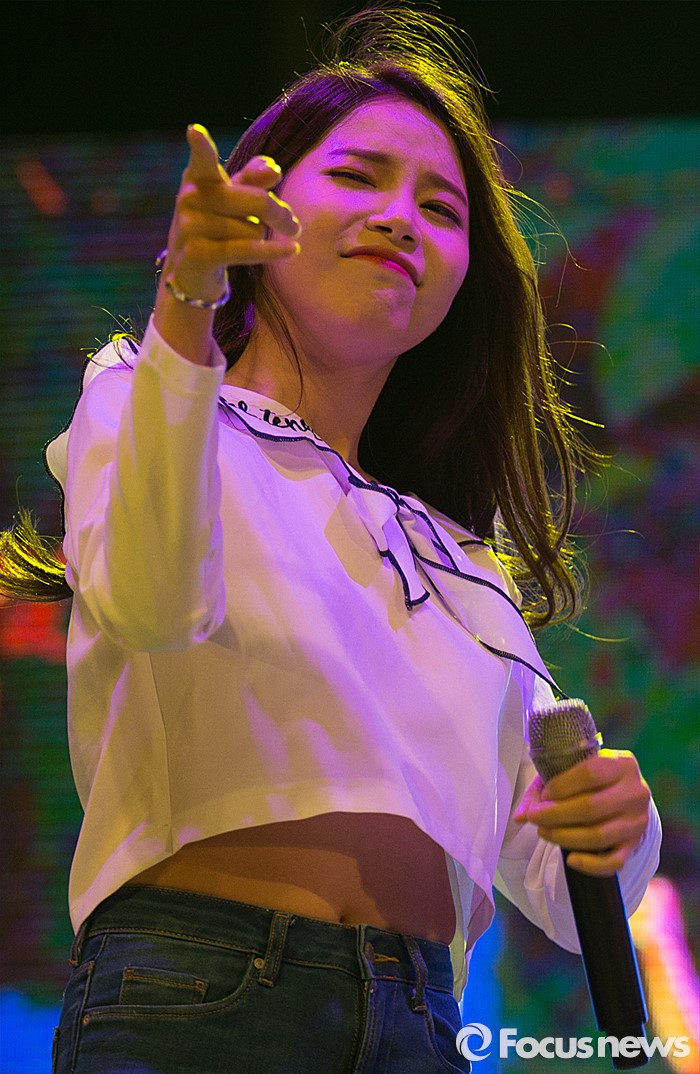 (서울=포커스뉴스) 12일 오후 서울 광진구 건국대학교 대운동장에서 열린 '2016 건국대학교 대동제'에서 걸그룹 마마무 멤버 솔라가 무대를 선보이고 있다.
