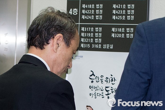 (서울=포커스뉴스) 가습기 살균제 피해사건의 최대 책임자로 지목된 신현우 전 옥시레킷벤키저 대표가 영장실질심사를 받기 위해 13일 오전 서울중앙지법으로 들어서고 있다.