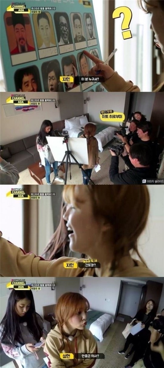 (서울=포커스뉴스) 설현과 지민이 온스타일 '채널 AOA'에서 안중근 의사의 사진을 보고 '긴또깡'이라 대답해 논란이 되고 있다.