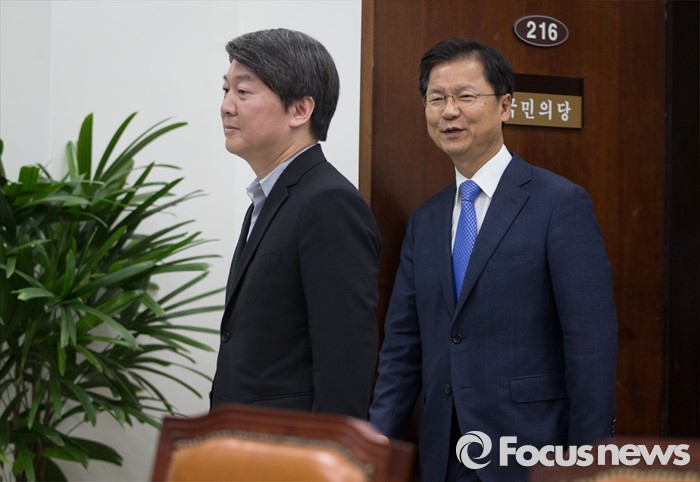 (서울=포커스뉴스) 안철수(왼쪽) 국민의당 상임공동대표와 천정배 대표가 13일 오전 서울 여의도 국회에서 열린 최고위원회의에 참석하고 있다.