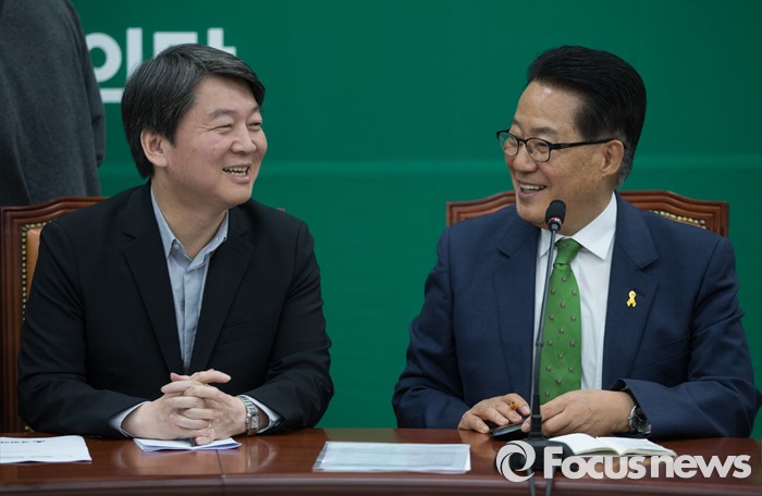 | △ 환하게 웃는 안철수와 박지원 |