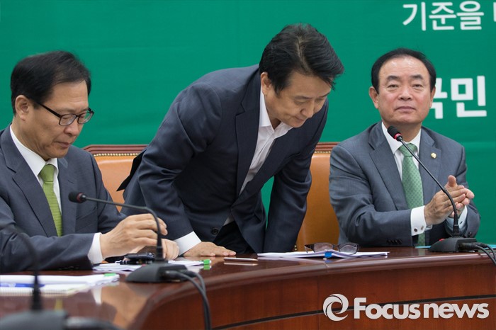 (서울=포커스뉴스) 김영환(가운데) 국민의당 신임 사무총장이 13일 오전 서울 여의도 국회에서 열린 최고위원회의에 참석해 인사하고 있다.