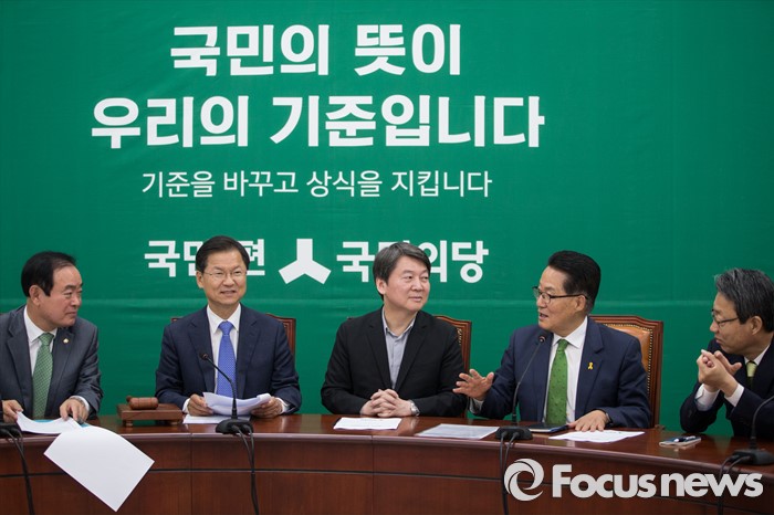 (서울=포커스뉴스) 박지원(오른쪽 두번째) 국민의당 원내대표가 13일 오전 서울 여의도 국회에서 열린 최고위원회의에서 모두발언을 하고 있다. 왼쪽부터 장병완 의원, 천정배 상임공동대표, 안철수 상임공동대표, 박 원내대표, 김성식 정책위의장