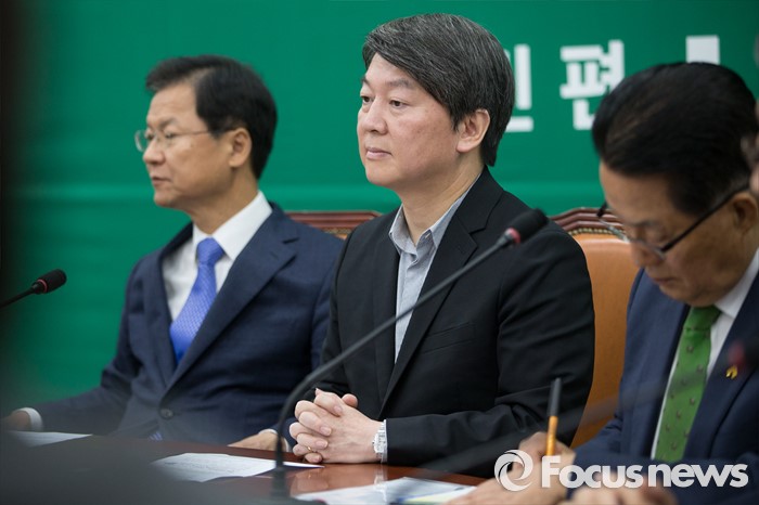 (서울=포커스뉴스) 안철수(가운데), 천정배(왼쪽) 국민의당 상임공동대표가 13일 오전 서울 여의도 국회에서 열린 최고위원회의에 참석해, 자리에 앉아 있다.