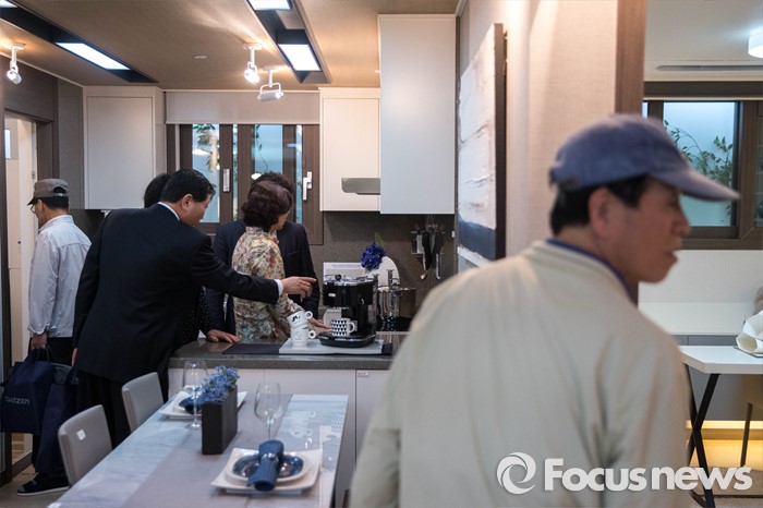 (서울=포커스뉴스) 이달 6만 8천여 가구라는 물량이 쏟아져 5월 분양전쟁이 예상되는 가운데 서울 용산구 효창동 KCC 스위첸 견본주택이 방문한 시민들로 붐비고 있다.