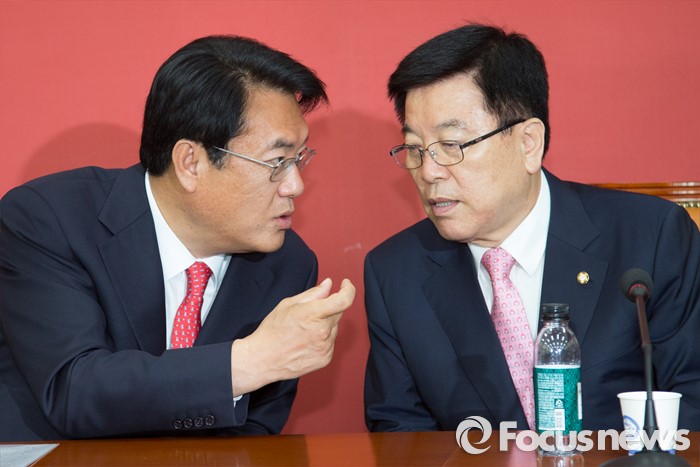 이어 "이것(혁신위의 독립성)을 명문화 한 것은 국민들에게 새누리당의 쇄신 의지를 보이겠다는 것"이라고 했다.정진석(왼쪽) 새누리당 원내대표와 김광림 정책위의장이 11일 오전 서울 여의도 국회에서 원내지도부 중진의원 연석회의에 참석해 대화하고 있다. 2016.05.11 김흥구 기자