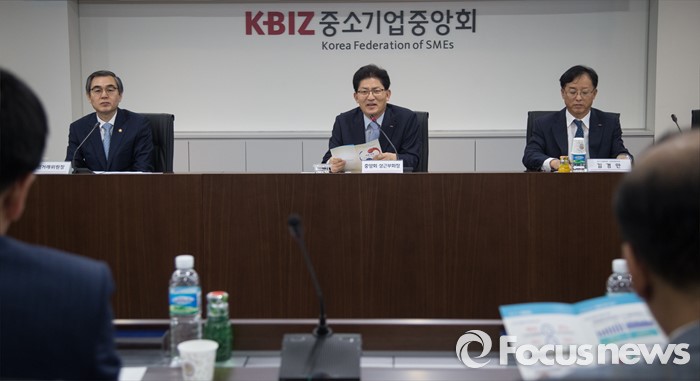 (서울=포커스뉴스) 송재희(왼쪽 두번째) 중소기업중앙회 상근부회장이 13일 오후 서울 여의도 중소기업중앙회에서 열린 유통분야 납품업체 간담회에 참석해 발언하고 있다.