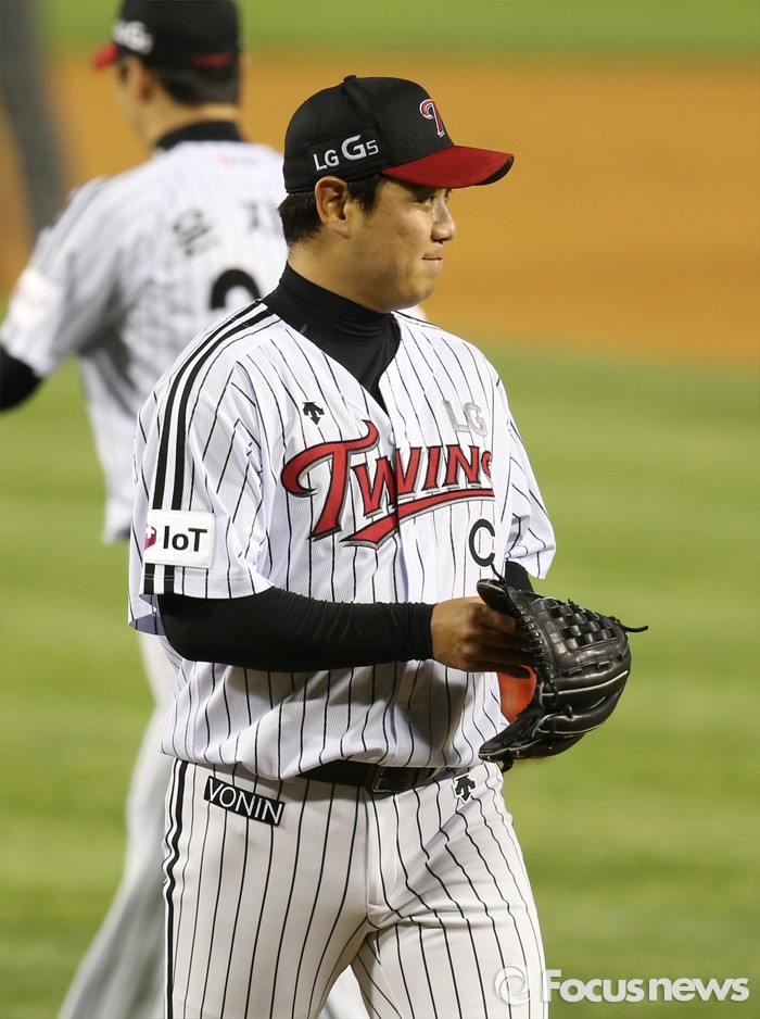 (서울=포커스뉴스) 13일 서울 잠실구장에서 열린 2016 프로야구 SK-LG 경기 7회초 2사 1루에서 LG 선발투수 류제국이 교체돼 마운드를 내려오고 있다.