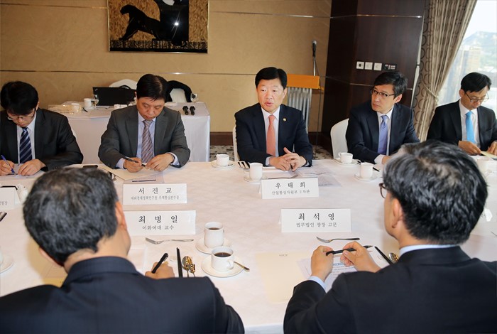(서울=포커스뉴스) 우태희 산업통상자원부 2차관이 13일 서울 중구 소공동 롯데호텔 칼톤스위트룸에서 열린 제4차 통상정책포럼에 참석해 포럼을 주재하고 있다. <사진제공=산업통상자원부>
