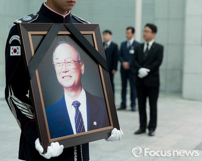 (서울=포커스뉴스) 14일 오전 서울 송파구 아산병원 장례식장에서 강영훈 전 국무총리의 발인식이 엄수되고 있다.