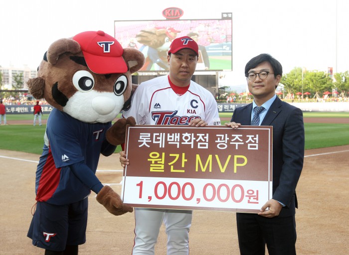 (서울=포커스뉴스) 프로야구 KIA 이범호가 롯데백화점 광주점 시상 4월 월간 최우수선수(MVP)로 선정됐다.