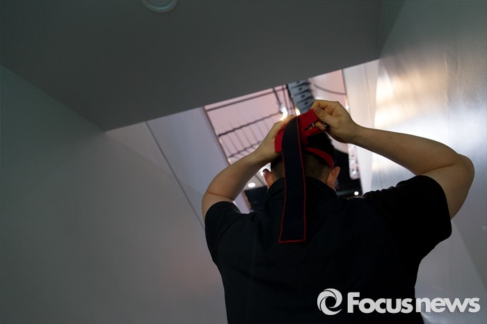 (서울=포커스뉴스) 14일 오후 서울 강서구 KBS스포츠월드에서 성과연봉제 저지를 위한 금융공기업지부 합동 대의원대회에 참석한 한 금융노조 조합원이 머리띠를 두르고 있다.