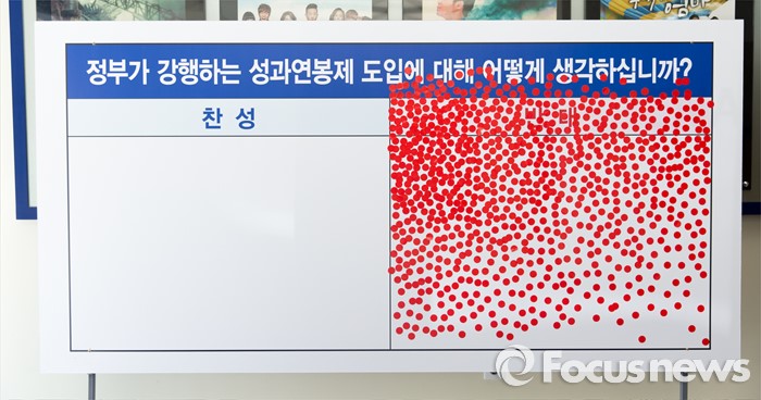 (서울=포커스뉴스) 14일 오후 서울 강서구 KBS스포츠월드에서 성과연봉제 저지를 위한 금융공기업지부 합동 대의원대회에 참석한 김문호(왼쪽) 금융노조 위원장이 총파업을 결의하는 삭발식을 마치고 발언하고 있다.