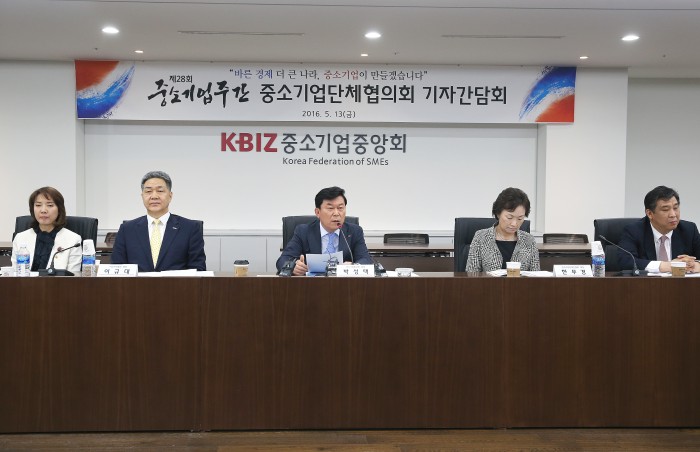 중기중앙회 박성택 회장, 소상공인연합회 최승재 회장, 이노비즈협회 이규대 회장, 메인비즈협회 박용주 회장, 여경협 한무경, 여벤협 이영 회장 등 중단협 소속 단체장은 지난 13일 서울 여의도 중기중앙회 1층 로비에서 '제28회 중소기업주간'의 시작을 선포했다.