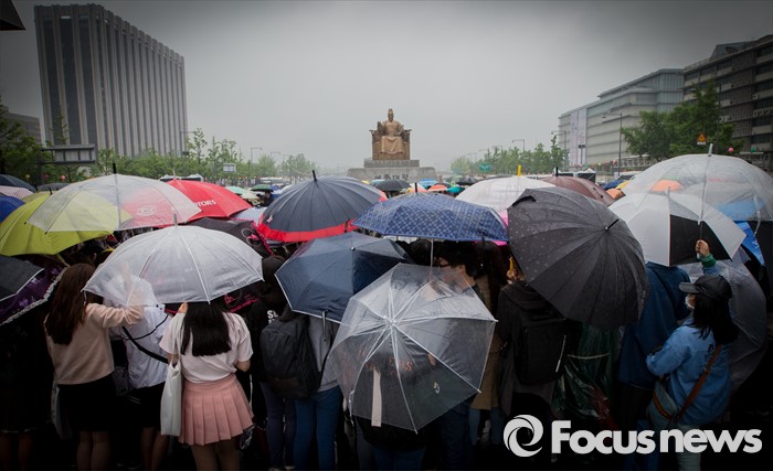 (서울=포커스뉴스) 스승의날인 15일 전국이 흐린 날씨를 보이는 가운데 서울과 수도권을 중심으로 비가 내리고 있다.