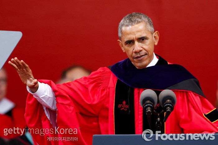 (서울=포커스뉴스) 버락 오바마 미국 대통령이 미국 럿거스대 졸업 축사에서 도널드 트럼프 공화당 대선 후보를 에둘러 비판했다.