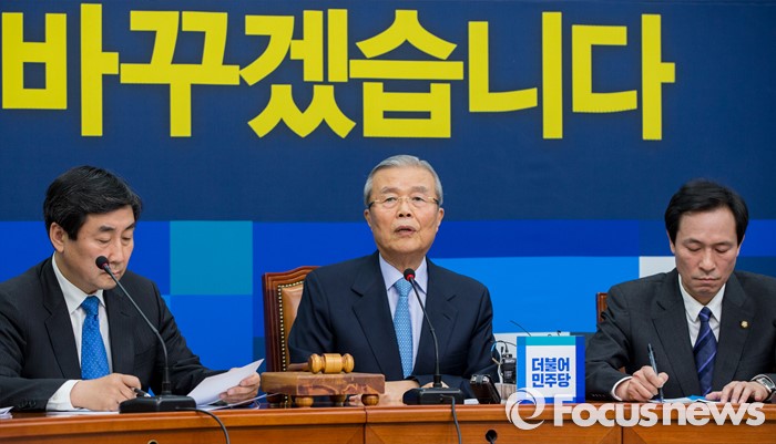 (서울=포커스뉴스) 16일 오전 서울 여의도 국회에서 열린 더불어민주당 제34차 비상대책위원회의에 참석한 김종인(가운데) 비대위원회 대표가 모두발언 하고 있다.