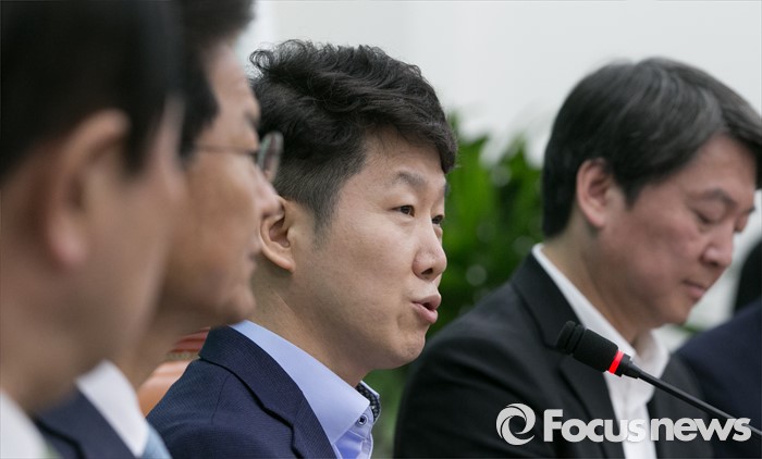 (서울=포커스뉴스) 16일 오전 서울 여의도 국회에서 열린 국민의당 최고위원회의에 국민대표로 참석한 황인국(왼쪽 세번째) 한국청소년재단 상임이사가 발언하고 있다.