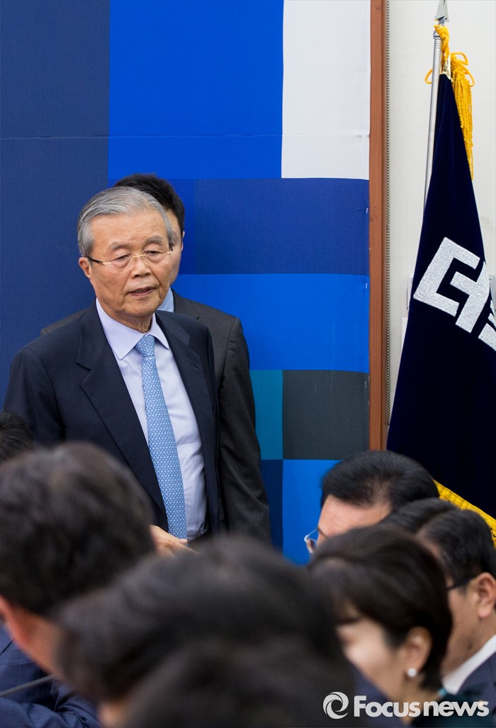 (서울=포커스뉴스) 16일 오전 서울 여의도 국회에서 열린 더불어민주당 제34차 비상대책위원회의에 참석한 김종인 비대위원회 대표가 회의를 마친 후 자리에서 일어나고 있다.