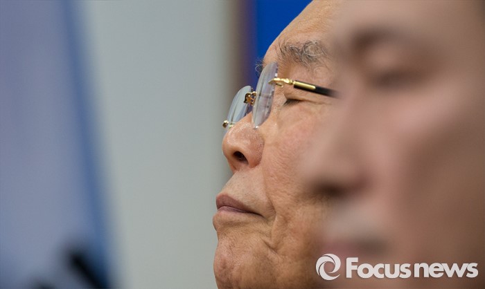 (서울=포커스뉴스) 16일 오전 서울 여의도 국회에서 열린 더불어민주당 제34차 비상대책위원회의에 참석한 김종인 비대위원회 대표(왼쪽)와 우상호 원내대표가 생각에 잠겨 있다.