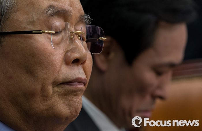 (서울=포커스뉴스) 16일 오전 서울 여의도 국회에서 열린 더불어민주당 제34차 비상대책위원회의에 참석한 김종인 비대위원회 대표(왼쪽)와 우상호 원내대표가 생각에 잠겨 있다.