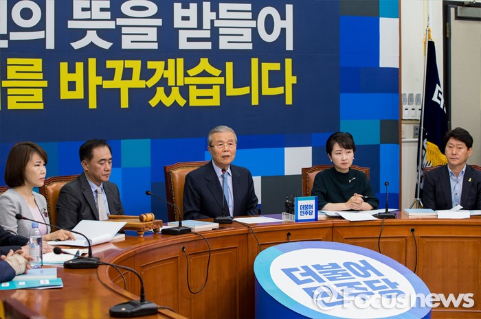 (서울=포커스뉴스) 16일 오전 서울 여의도 국회에서 열린 더불어민주당 1차 조직강화특위회의에 참석한 김종인(가운데) 비상대책위원회 대표가 모두발언 하고 있다.