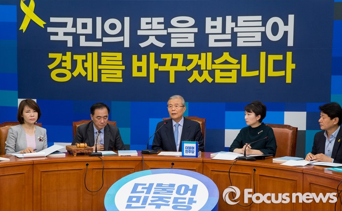 (서울=포커스뉴스) 16일 오전 서울 여의도 국회에서 열린 더불어민주당 1차 조직강화특위회의에 참석한 김종인(가운데) 비상대책위원회 대표가 모두발언 하고 있다.