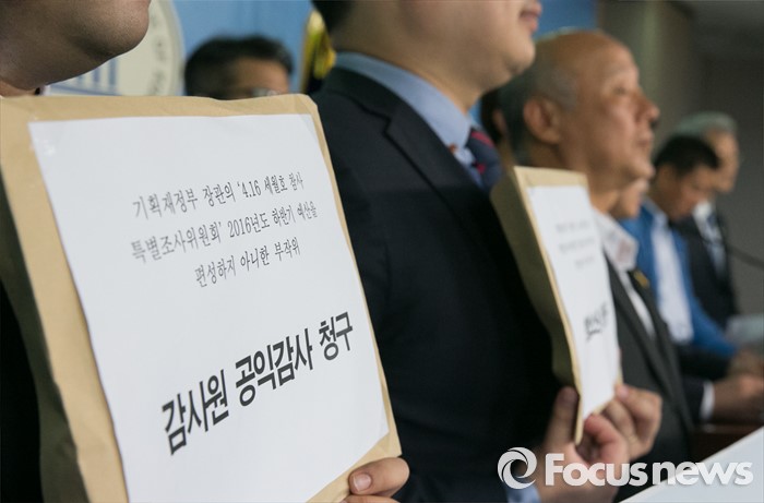 (서울=포커스뉴스) 16일 오전 서울 여의도 국회 정론관에서 민주사회를 위한 변호사모임 등 관계자들이 4·16 세월호참사 특별조사위원회 하반기 예산 미편성 위법에 따른 헌법소원 및 공익감사 청구 기자회견을 하고 있다.