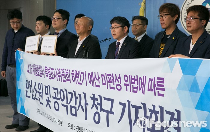 (서울=포커스뉴스) 16일 오전 서울 여의도 국회 정론관에서 민주사회를 위한 변호사모임 등 관계자들이 4·16 세월호참사 특별조사위원회 하반기 예산 미편성 위법에 따른 헌법소원 및 공익감사 청구 기자회견을 하고 있다.