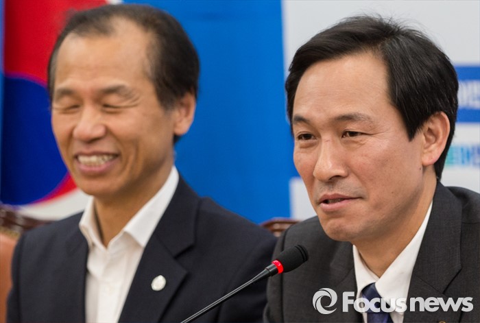 (서울=포커스뉴스) 우상호 더불어민주당 원내대표가 16일 국가보훈처가 '임을 위한 행진곡'의 5·18 기념곡 지정 및 제창 불가 입장을 밝힌 것에 대해 "만일 5월 18일 기념식장에서 제창이 안 되면 이 정권에 협조할 수 없다"고 말했다.