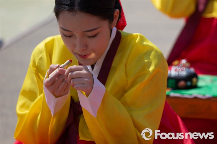 (서울=포커스뉴스) 16일 오전 서울 중구 남산골 한옥마을 천우각 광장에서 열린 제44회 성년의 날 행사에 참석한 학생들이 전통 성년례를 올리고 있다.