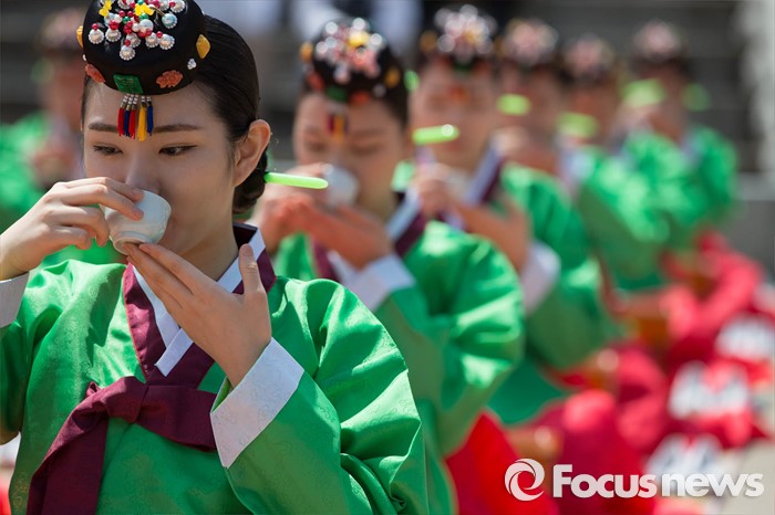 (서울=포커스뉴스) 16일 오전 서울 중구 남산골 한옥마을 천우각 광장에서 열린 제44회 성년의 날 행사에 참석한 학생들이 전통 성년례를 올리고 있다.