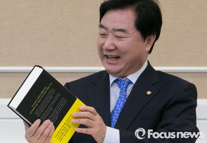 (서울=포커스뉴스) 16일 오후 서울 여의도 국회 귀빈식당에서 열린 필리버스터 발언 의원 초청 오찬 간담회에 참석한 이석현 국회 부의장이 의원들의 발언을 책으로 엮은 '필리버스터 : 민주주의 최전선' 도서를 살펴보고 있다.