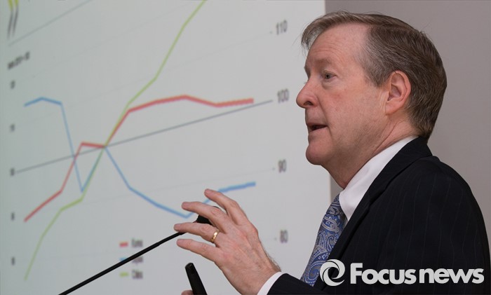 (세종=포커스뉴스) 랜달존스(Randal Jones) OECD 사무국 선임이코노미스트가 16일 오전 세종시 KDI(한국개발연구원) 영상회의실에서 열린 OECD 한국 경제보고서 발표 세미나에서 거시경제 동향 및 전망에 대한 기조발표를 하고 있다.
