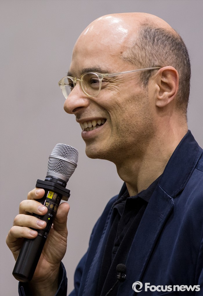 (서울=포커스뉴스) 16일 오후 서울 종로구 서울예술고등학교를 찾은 프랑스 작가 베르나르 베르베르가 '오늘날의 예술적 지능'이란 주제로 학생들에게 강연하고 있다.