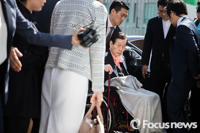 (서울=포커스뉴스) 신격호 롯데그룹 총괄회장이 16일 오후 서울 종로구 서울대병원으로 들어서고 있다. 신회장은 재판부 지정 정신감정 병원인 서울대 병원에 입원, 성년후견인 지정을 위한 감정을 약 2주간 받게 된다.