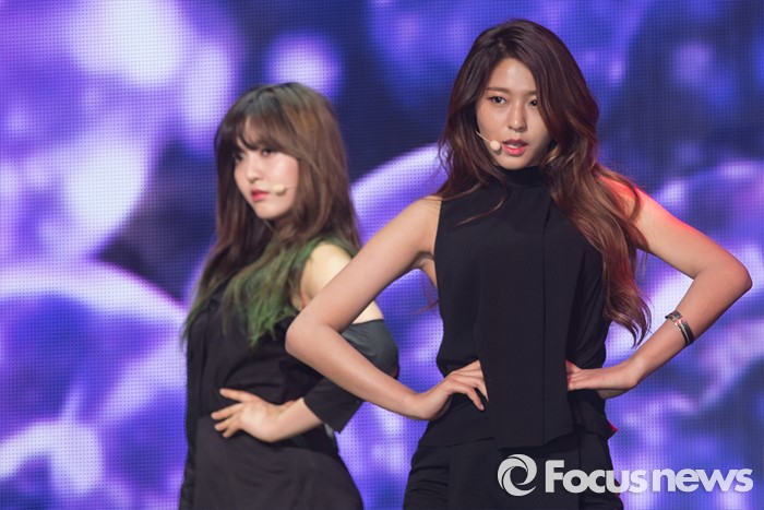 (서울=포커스뉴스) 16일 오후 서울 광진구 예스24 라이브홀에서 열린 AOA 미니앨범 'Good Luck' 발표 쇼케이스에서 멤버 설현(오른쪽)이 무대를 선보이고 있다.