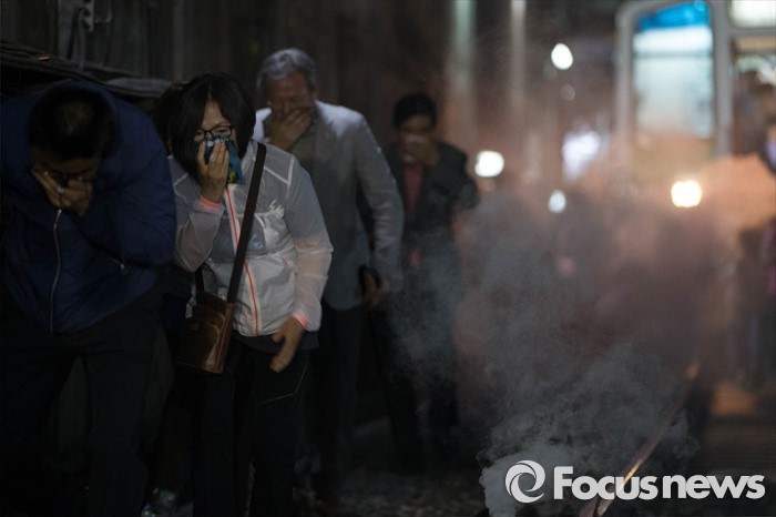 △ 지하철 선로로 대피하는 시민들