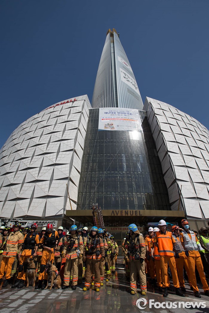 (서울=포커스뉴스) 16일 오후 서울 송파구 제2롯데월드몰에서 열린 '재난대응 안전한국훈련'이 끝나고 참가한 유관기관원들이 한 자리에 모여있다.