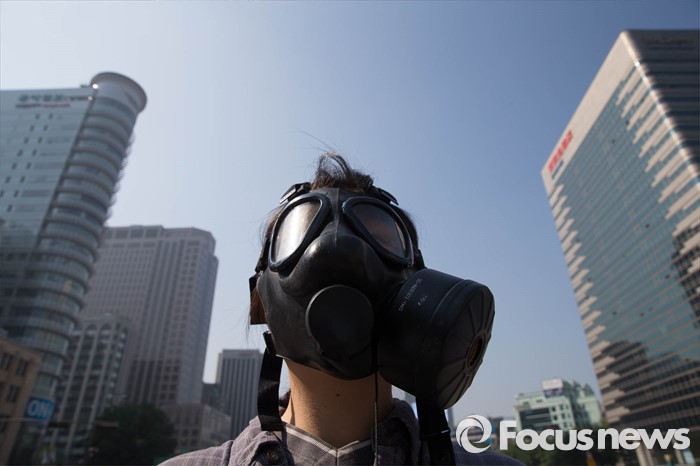 (서울=포커스뉴스) 17일 오전 서울 종로구 광화문광장 인근에서 서울환경연합원들이 경유차 활성화 정책 철회를 촉구하며 퍼포먼스를 벌이고 있다.