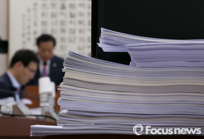 (서울=포커스뉴스) 17일 오전 서울 여의도 국회에서 열린 법제사법위원회 전체회의에 참석한 의원들이 법안 관련 자료를 살펴보고 있다.