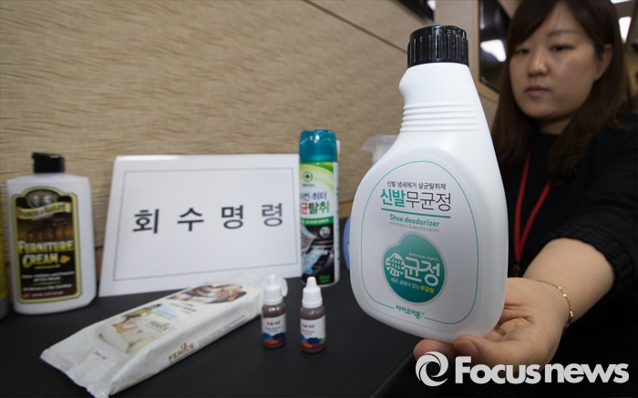 (세종=포커스뉴스) 조은애 한국환경산업기술원 연구원이 17일 오전 세종시 정부세종청사 환경부 기자실에서 사용금지 물질 함유된 탈취제 등 7개 제품의 시장유통 금지·퇴출에 대한 설명을 하고 있다. 환경부는 이날 회수명령, 회수권고, 개선명령 제품을 공개하며 불량제품을 시장에 발붙일 수 없도록 검사, 관리를 강화한다고 밝혔다.