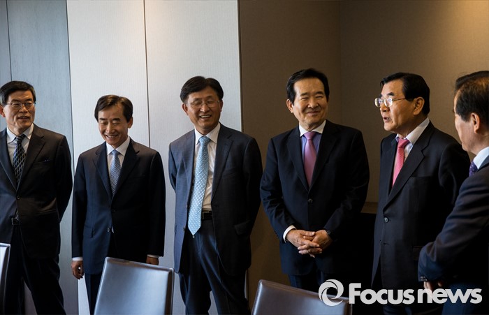 (서울=포커스뉴스) 17일 오후 서울 중구 플라자호텔에서 열린 경제사회발전 노사정위원회 역대 상임위원 간담회에 참석한 김대환(오른쪽 두번째) 위원장이 참석자들과 대화하고 있다.