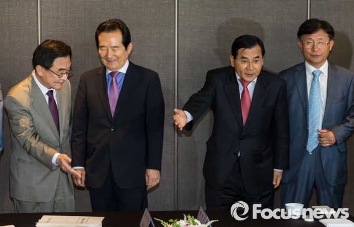 (서울=포커스뉴스) 17일 오후 서울 중구 플라자호텔에서 열린 경제사회발전 노사정위원회 역대 상임위원 간담회에 참석한 김대환(왼쪽 세번째) 위원장이 참석자들을 자리로 안내하고 있다.