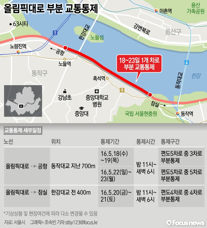 | △ [그래픽] 올림픽대로 부분 교통통제 |
