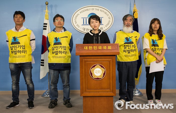 (서울=포커스뉴스) 가습기살균제 피해자와 가족모임(가피모)이 이언주 더불어민주당 의원과 함께 17일 오후 서울 여의도 국회 정론관에서 가습기 살균제 피해 대책마련 4당 원내대표 면담요구 기자회견을 하고 있다.