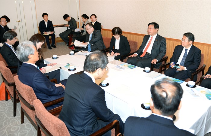 | △ 일본경제단체협의회장과 면담 갖는 주형환 장관 |